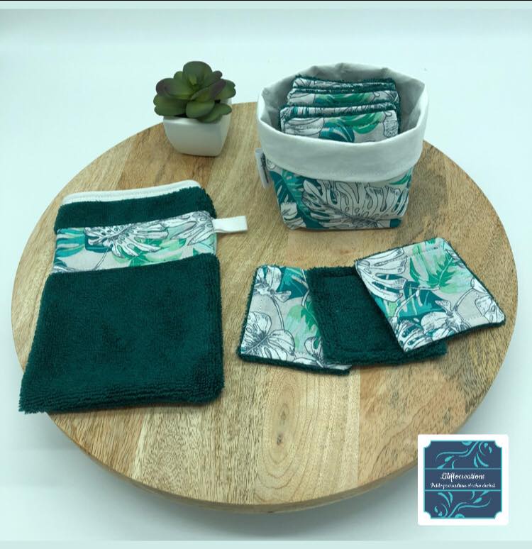 en eponge bambou et coton, il peut être confectionné en association avec les articles du pack salle de bain.